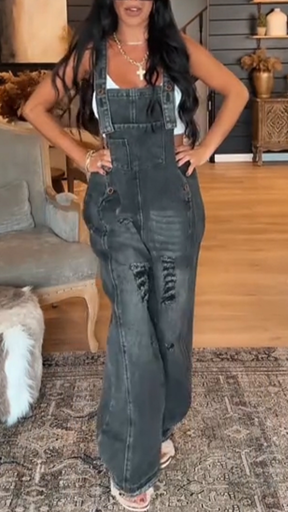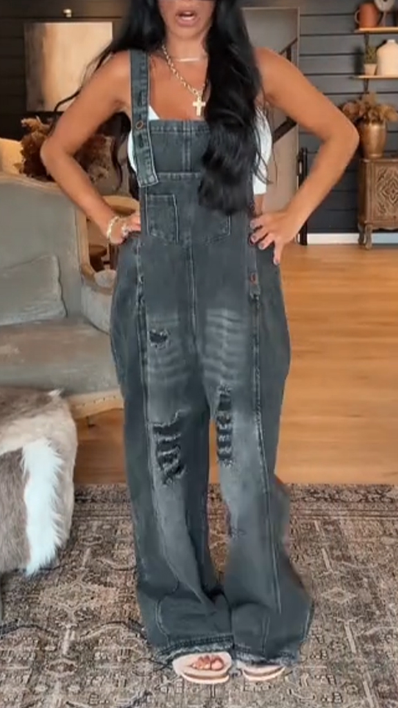 Women Suspender Washed Scratched Casual Denim Jumpsuit