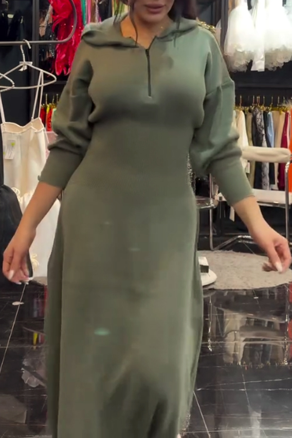 Women Casual Zipper Neck Hooded Knitted Slim Dress