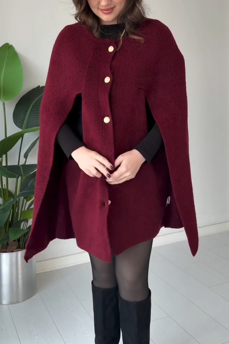 Women Round-Neck Buttoned Hooded Casual Cape Top