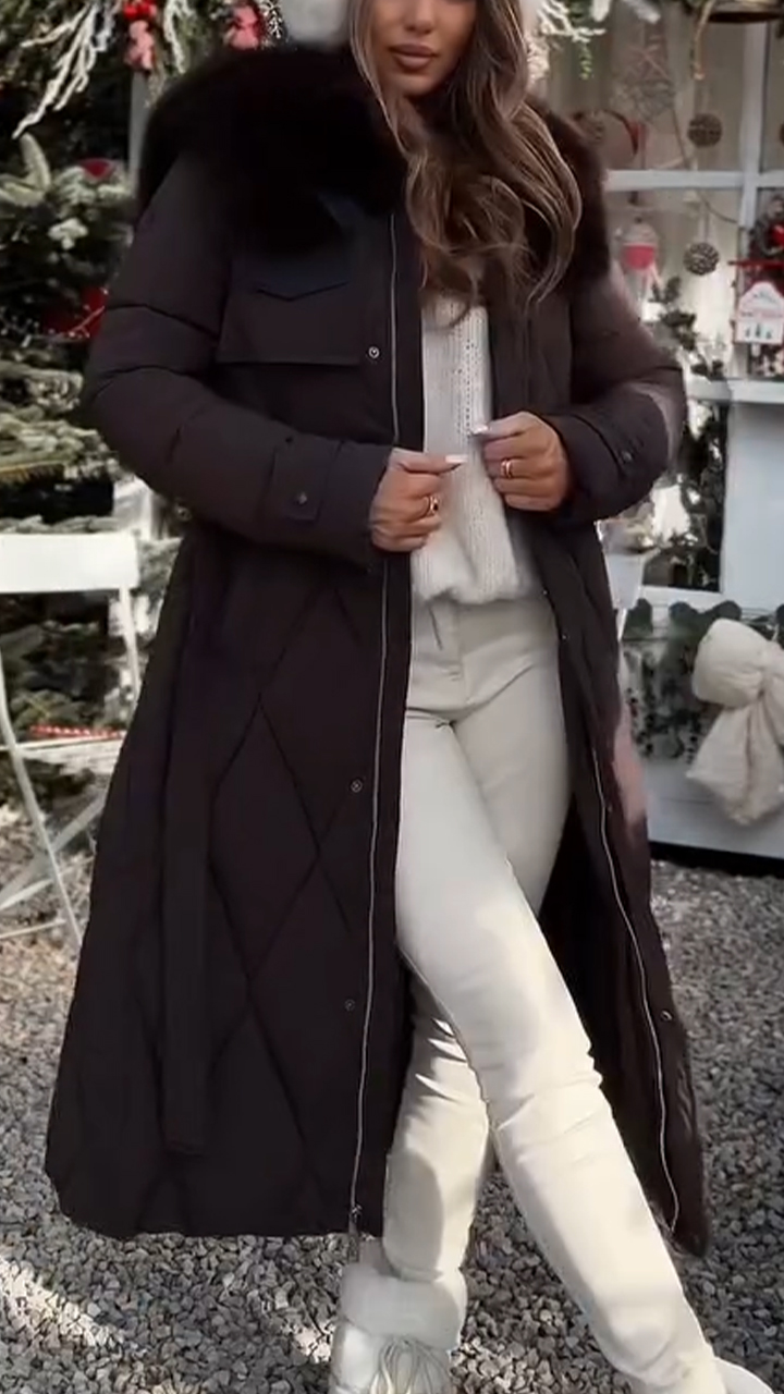 Women's Long Warm Cotton Coat with Artificial Fur Collar