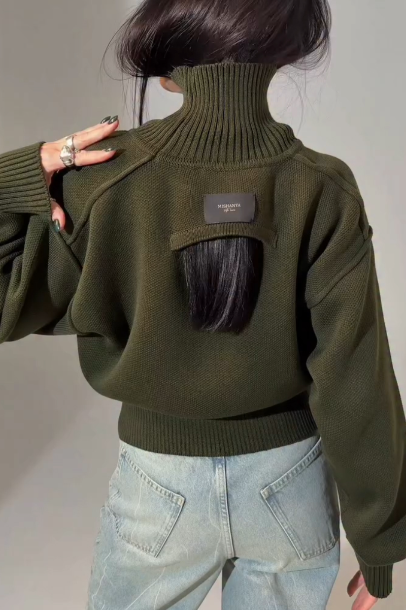 Women Lapel Stitching Contrast Color Casual Knitted Top