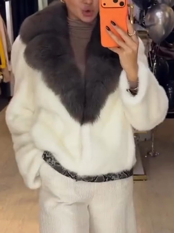 Women Artificial Fur Collar Short Cotton Jacket + Shorts Casual Suit