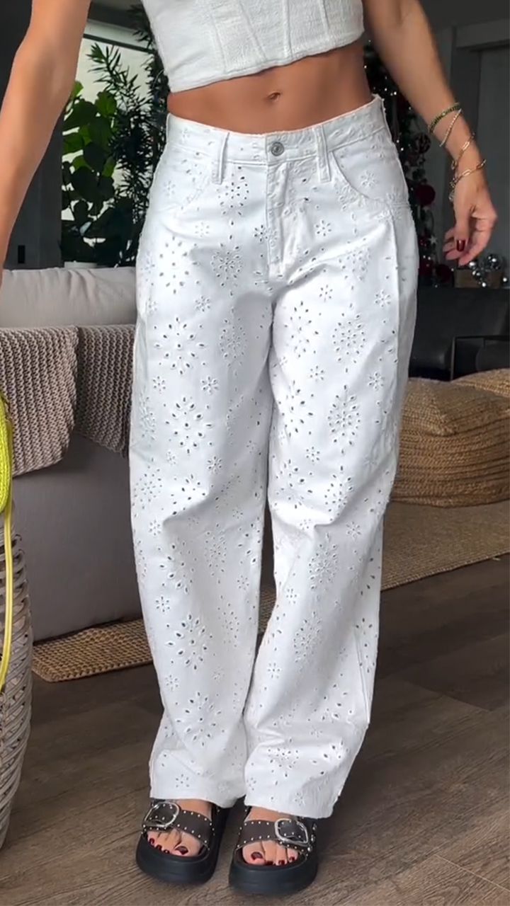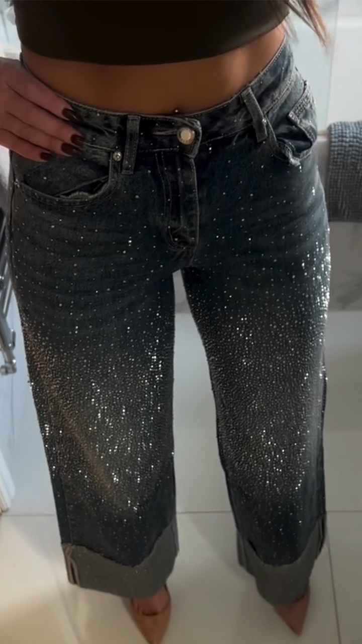 Women High Waisted Rhinestone Spliced Casual Jeans