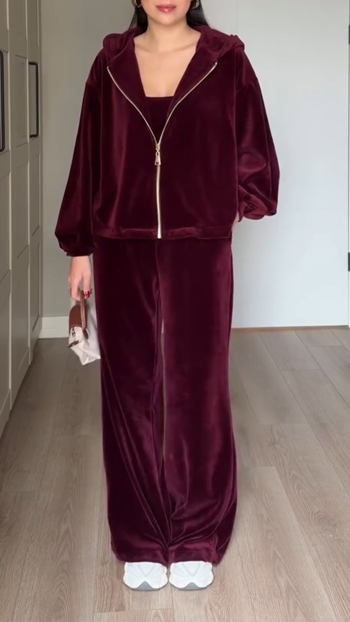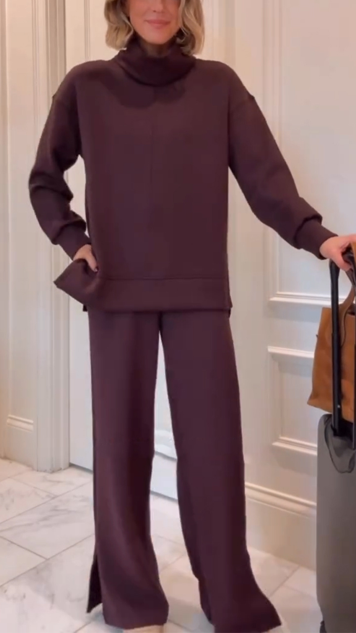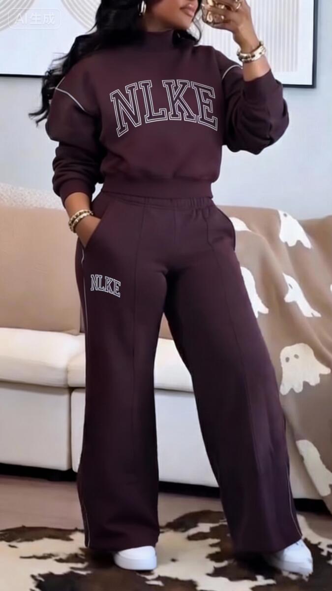 Women Round Neck Top and Pants Solid Color Casual Suit
