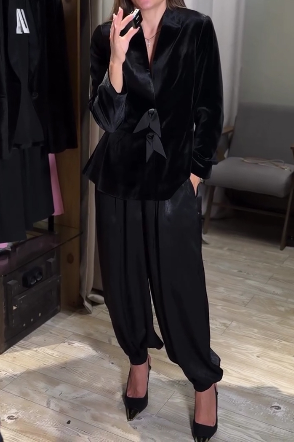 Women Elegant Satin Bow Velvet Suit + Satin Bloomers Suit