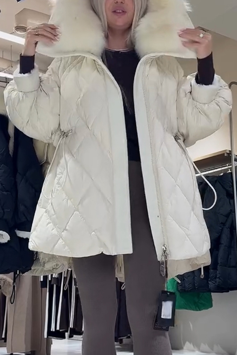 Women Large Fur Collar Waist Drawstring Casual Cotton Jacket