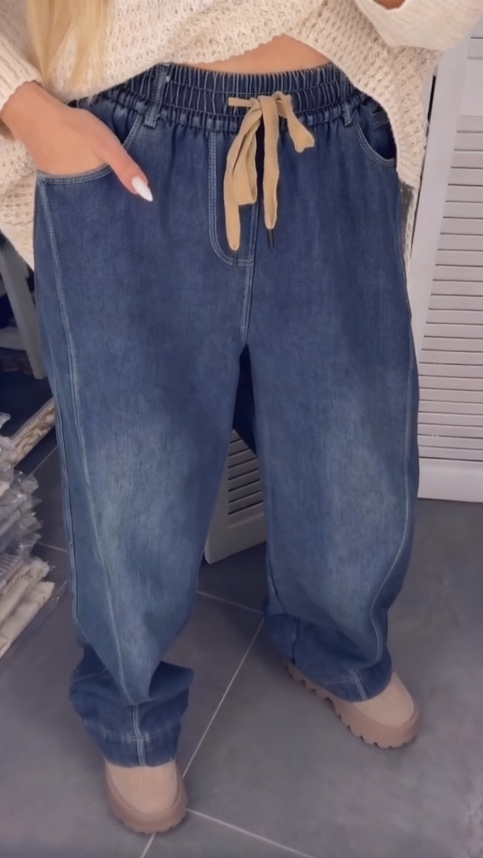 Womens Drawstring Elastic Washed Casual Jeans