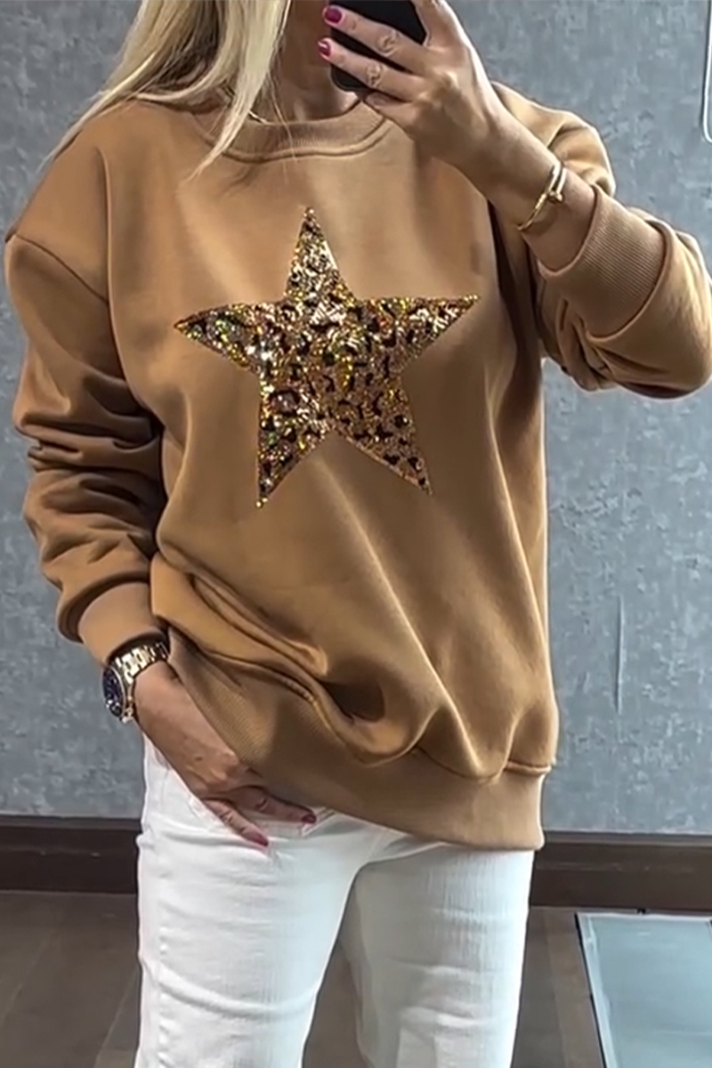 Women Round Neck Star Glitter Printed Casual Top