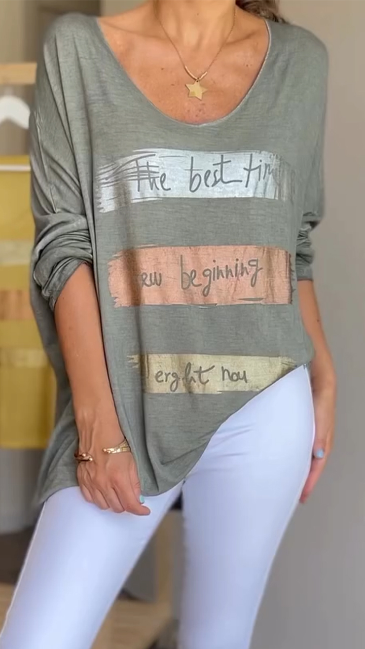 Women U-neck Printed Letter Casual Top