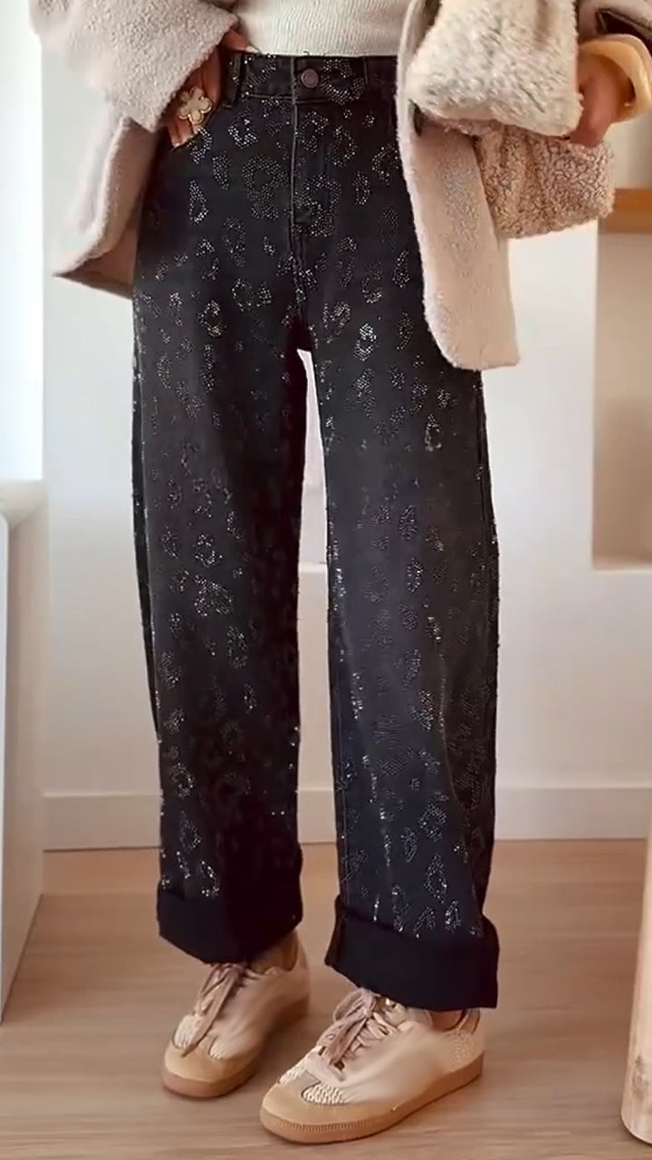 Women Hot Stamping Diamond Splicing Multiple Pockets Temperament Casual Cargo Pants