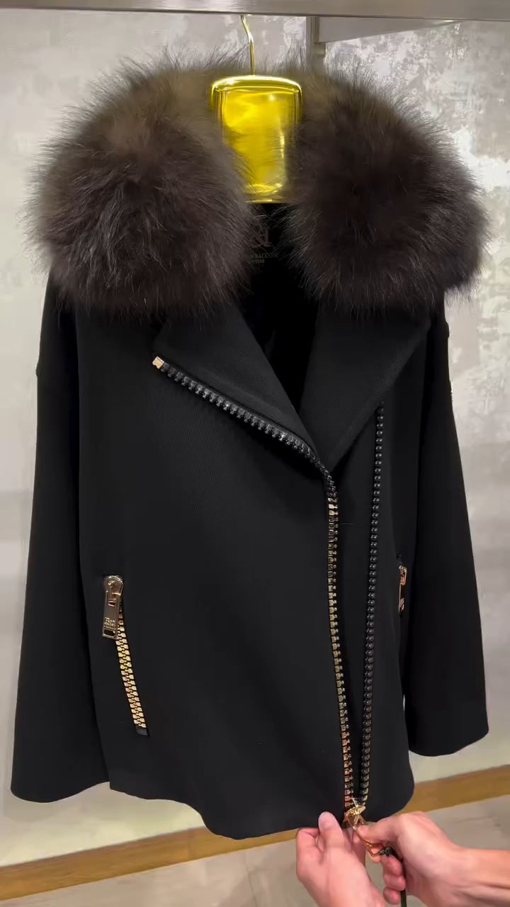 Women Fur Collar Pocket Zipper Design Casual Cotton Jacket
