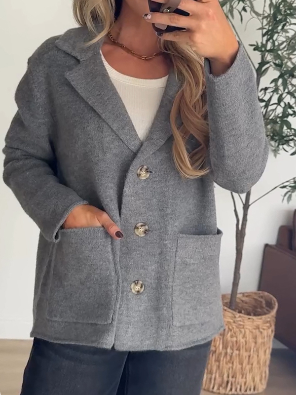 Women Laple Collar Patchwork Plaid Temperament Casual Coat