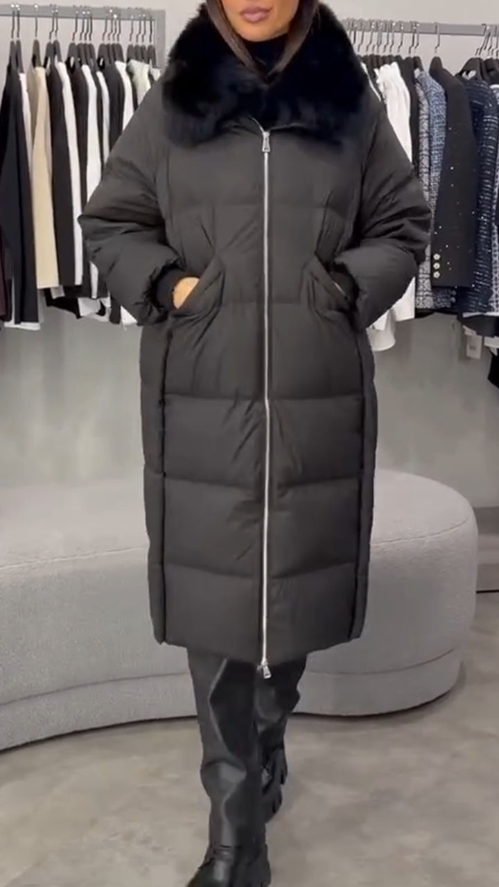 Women's Winter Solid Color Diamond Check Zipper Warm Long Coat