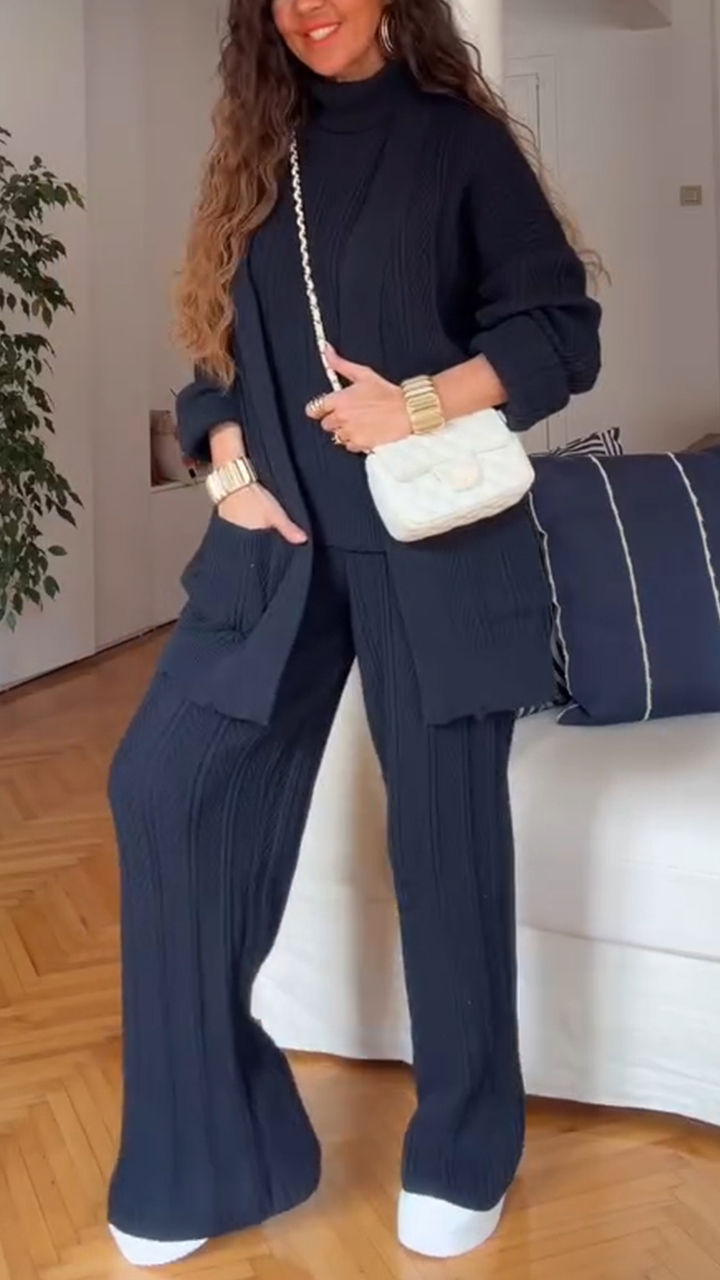 Women Elegant Large Pocket Waist Tie Cardigan Warm Coat
