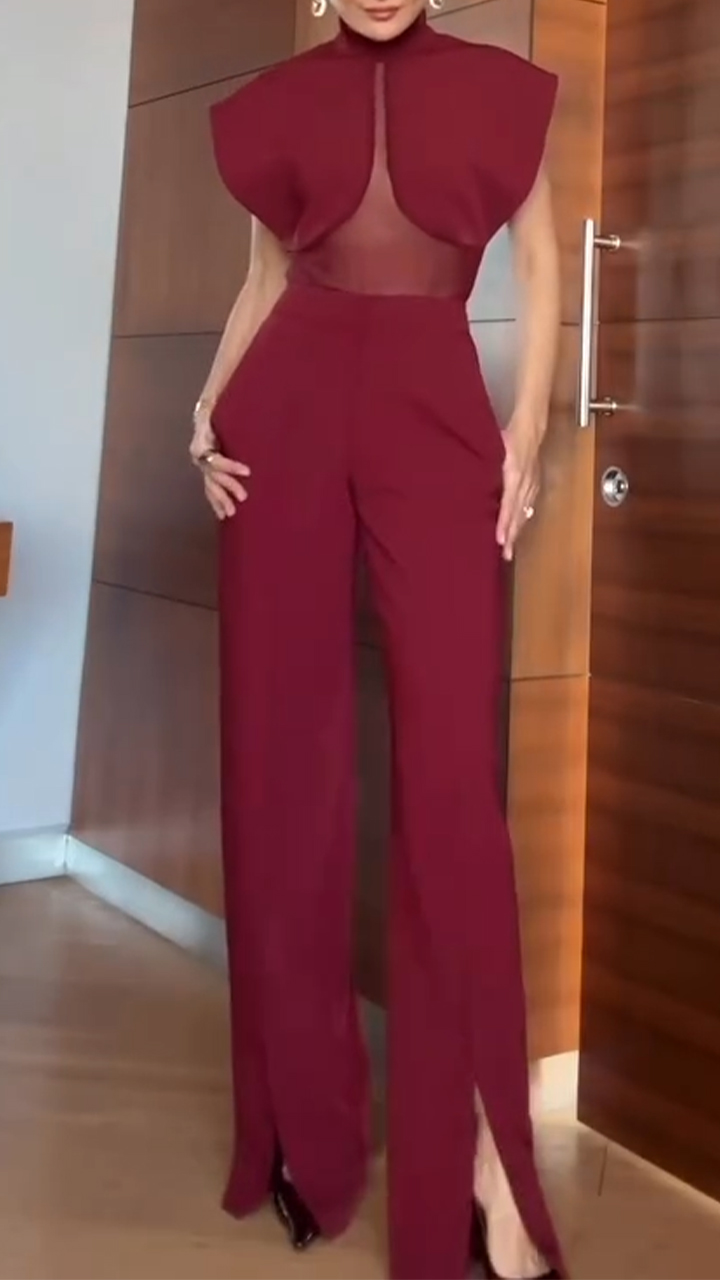 Women Stand-collar Patchwork Top and Pants Casual Set