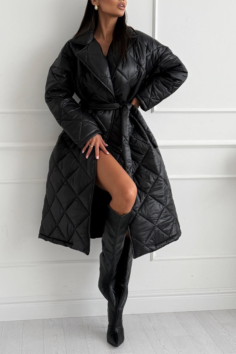 Women Elegant Deep V Lapel Waist Tie Warm Long Coat