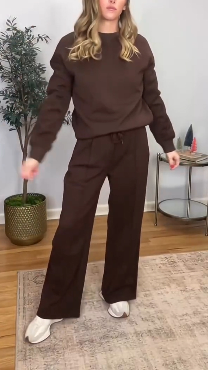 Womens Round Neck Top+ Pants Temperament Leisure Suit