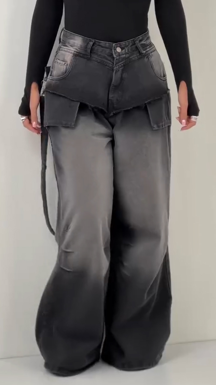 Women Patchwork Washing Water Back Hanging Rope Design Casual Jeans