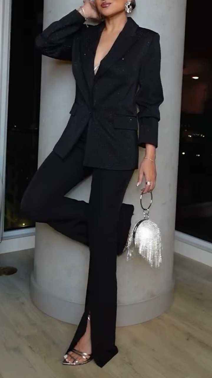 Women Lapel Blazer+ Slit Hem Pants Solid Color Temperament Commuter Suit