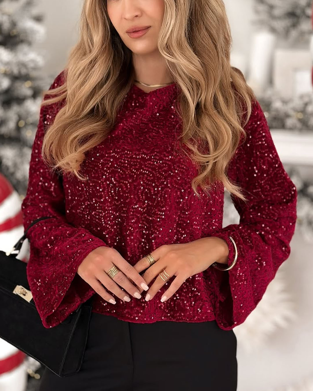 Women Round Neck Sequin Sparkling Casual Suit with Elegant Temperament