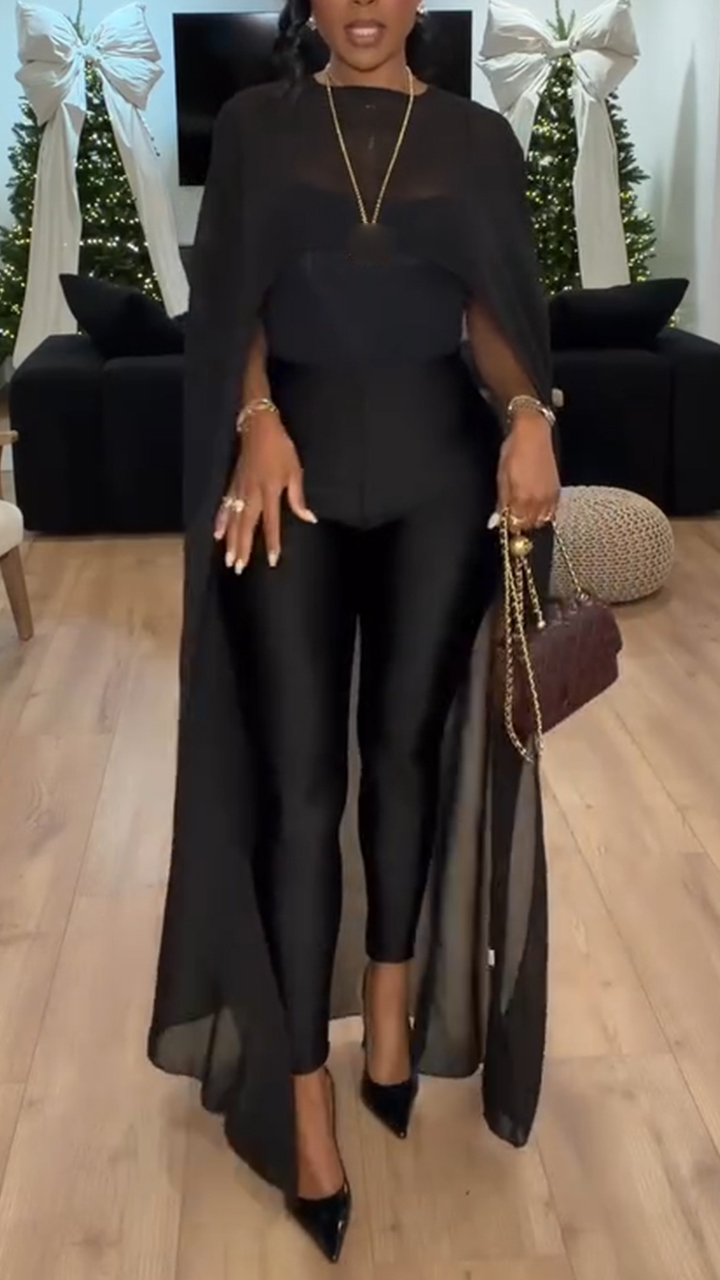 Women Round Neck Irregular Solid Color Casual Cloak