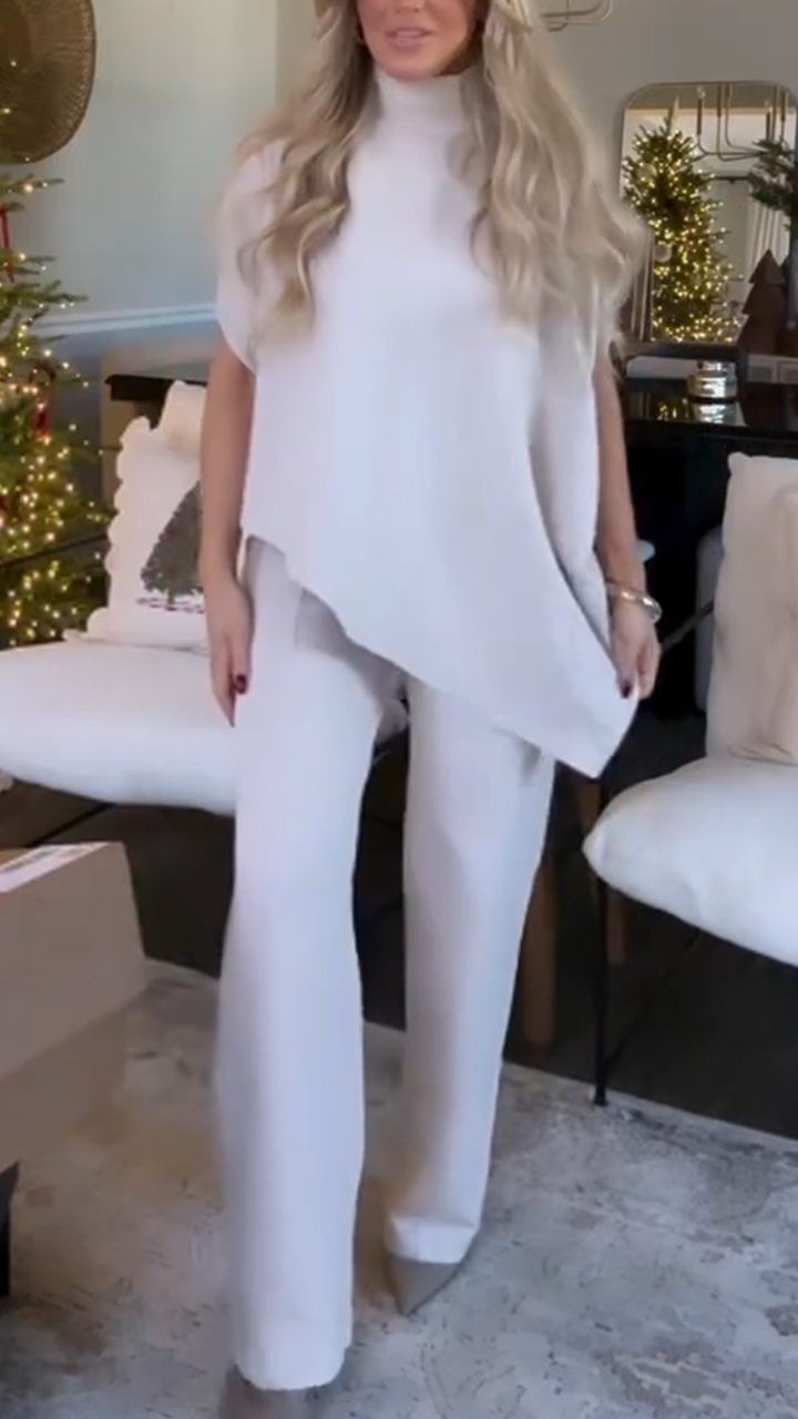 Women High Necked Irregular Top and Pants Casual Suit