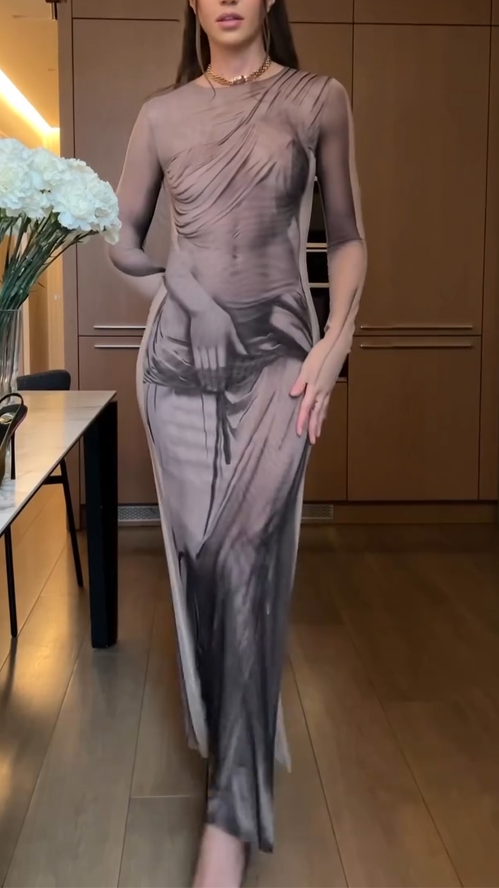 Women Round Neck Printed Elegant Casual Dress