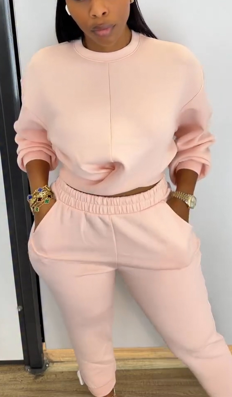 Casual Round Neck Long Sleeve Two Piece Suit