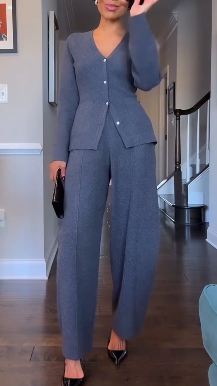 Women V-neck Top and Pants Casual Set