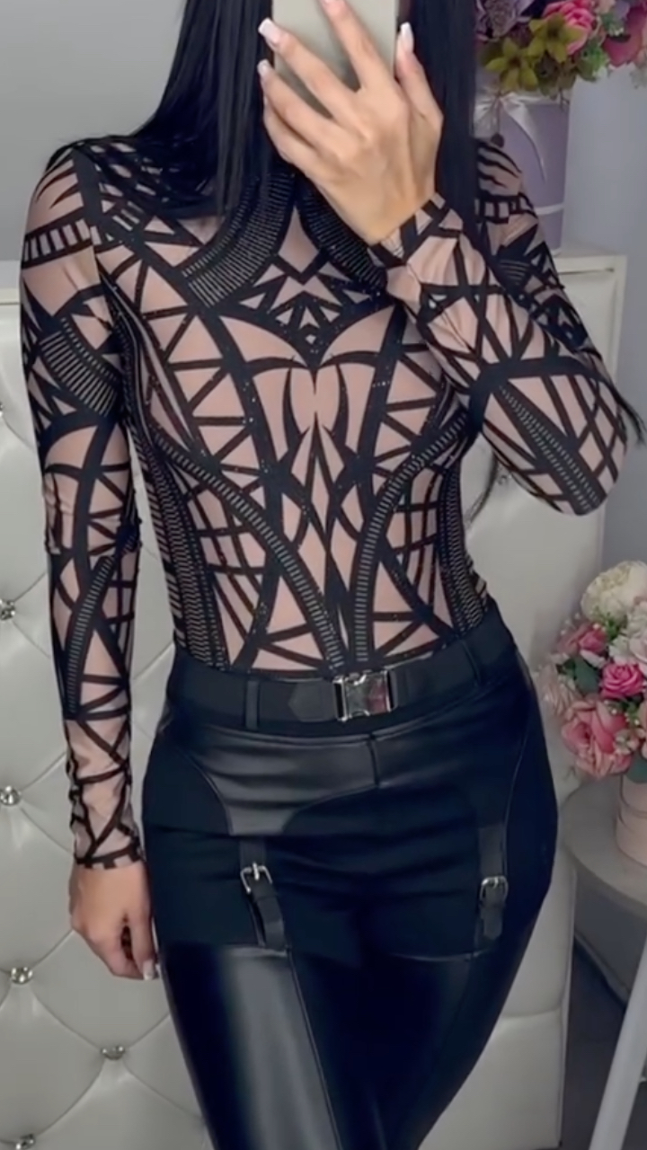Women's Round Neck, Fitted, Sheer, Sexy Top