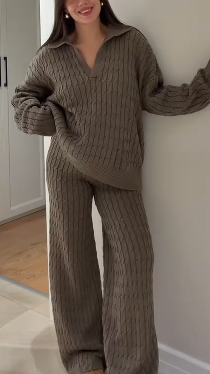 Women Round Neck Knit Top + Skirt Elegant Casual Set