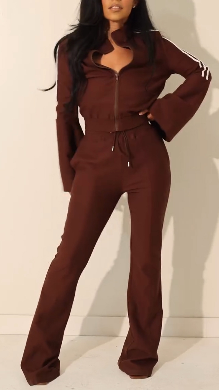 Women Casual Side Contrast Stripe Suit + Pants Suit