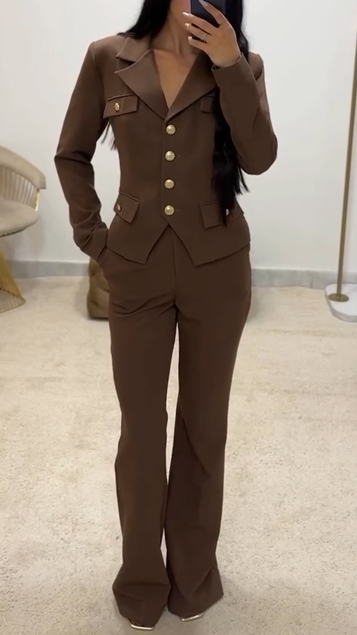 Women Lapel Button-down Top + Pants Temperament Commuter Suit
