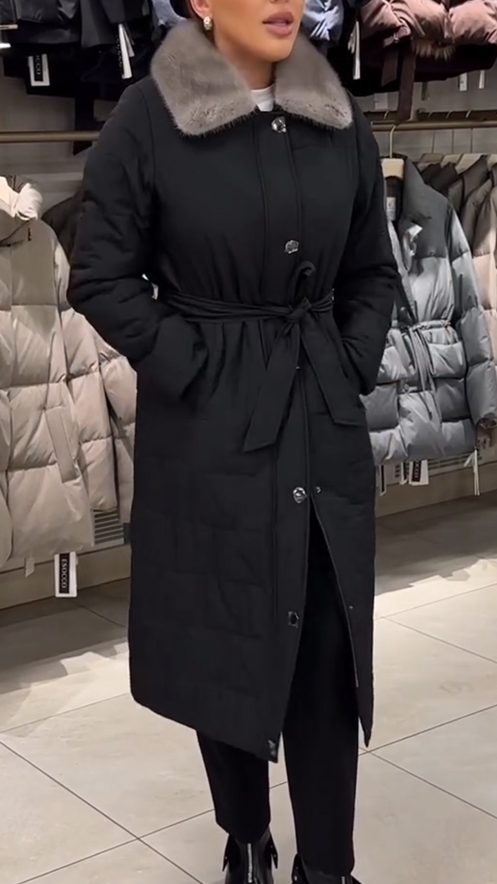 Women Artificial Fur Collar Long Casual Cotton Jacket