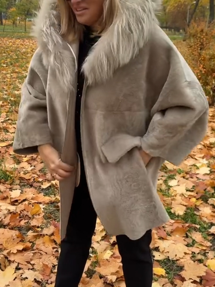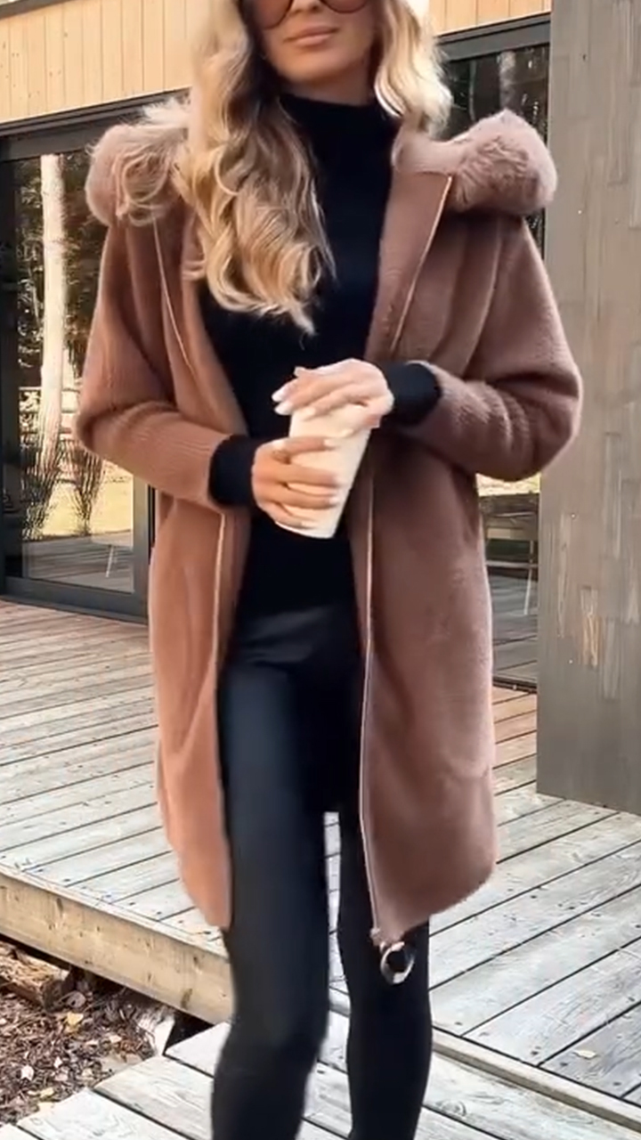 Women Artificial Fur Collar Hooded Casual Plush Coat