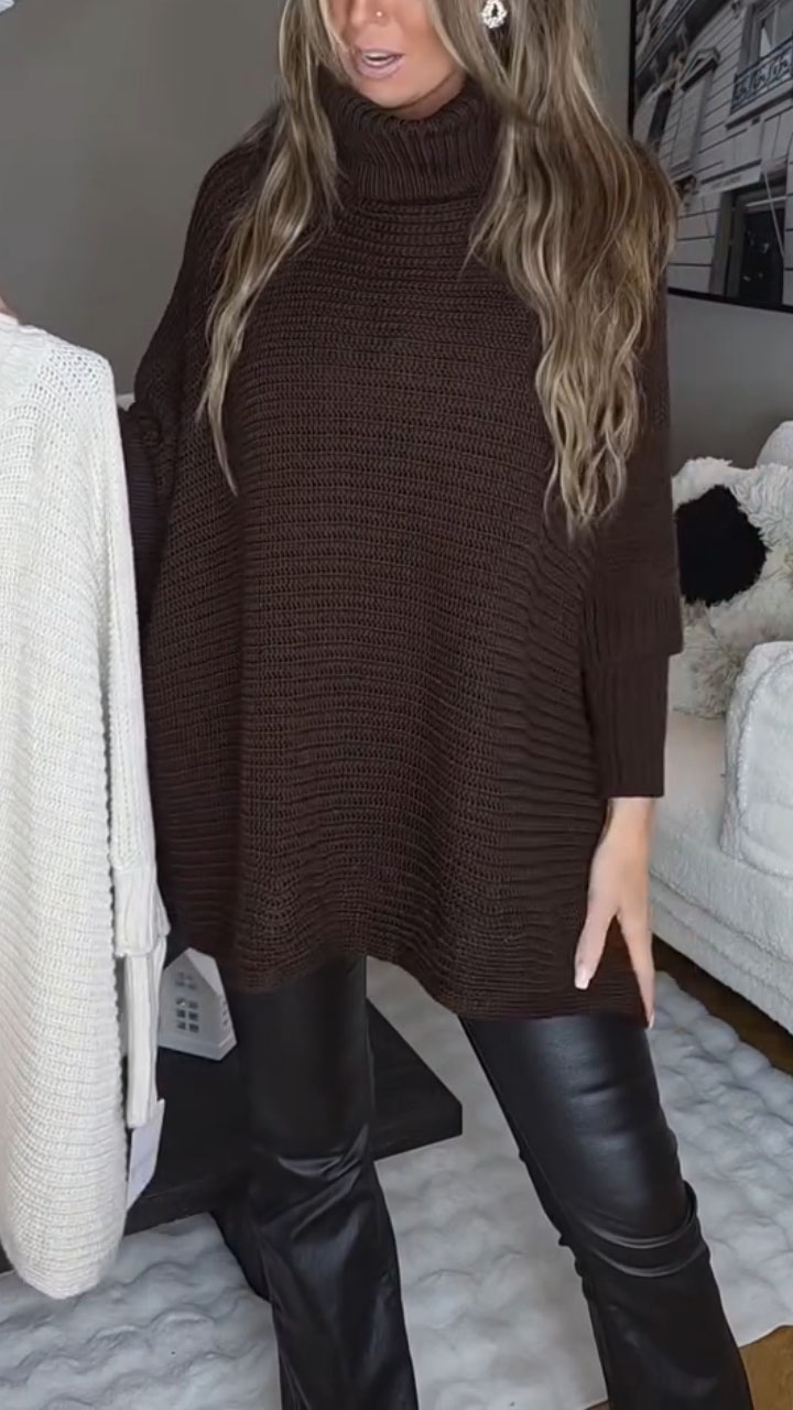 Women High-neck Solid Color Casual Knit Sweater
