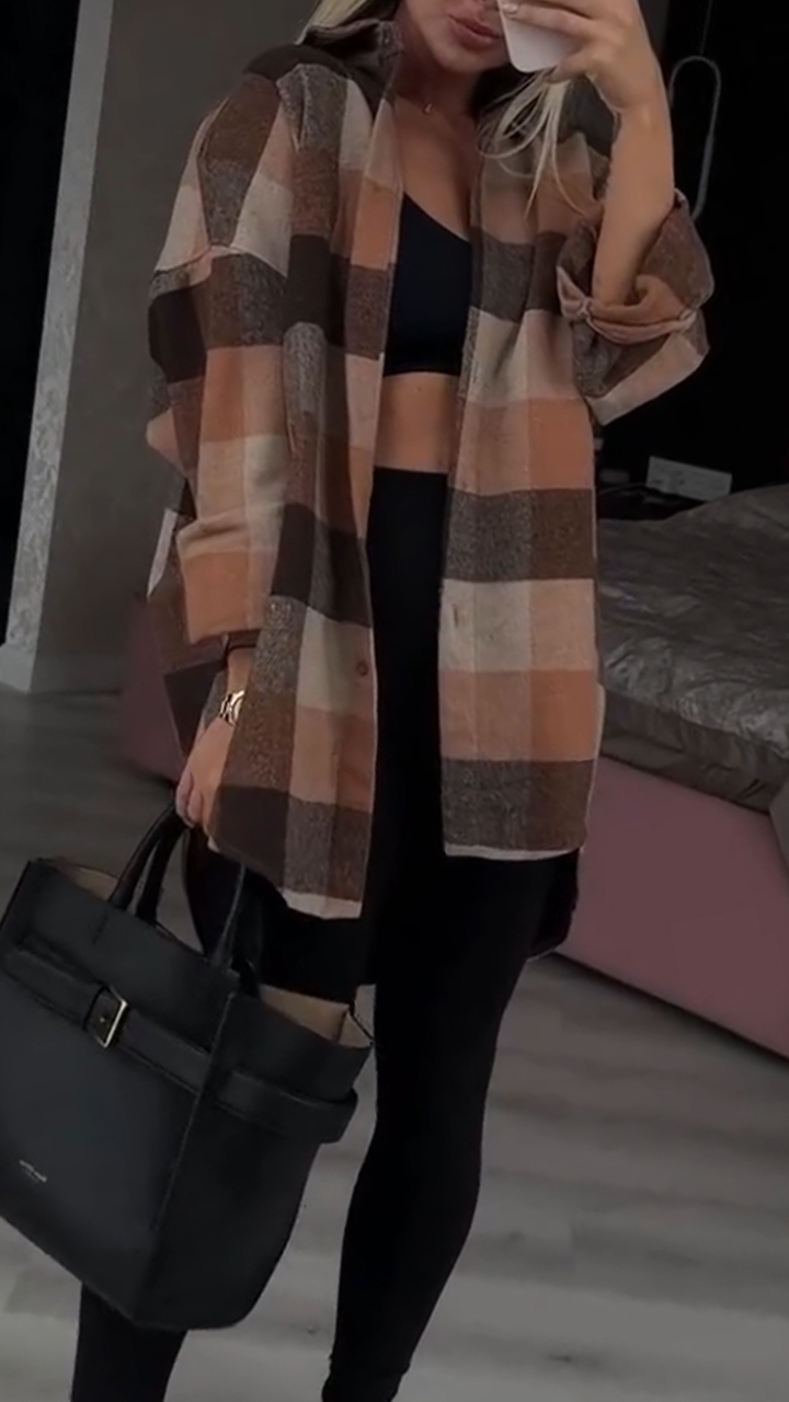 Women Collared Plaid Casual Shirt