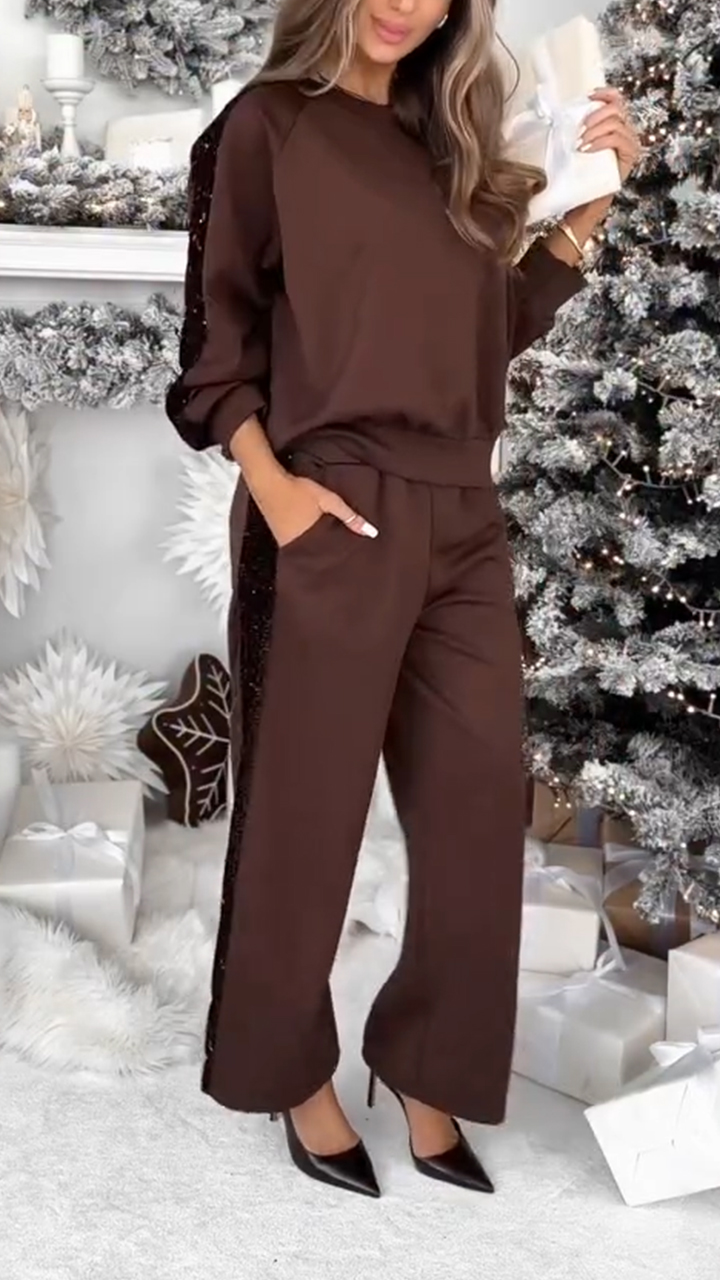 Women Round Neck Sequin Sparkling Casual Suit with Elegant Temperament