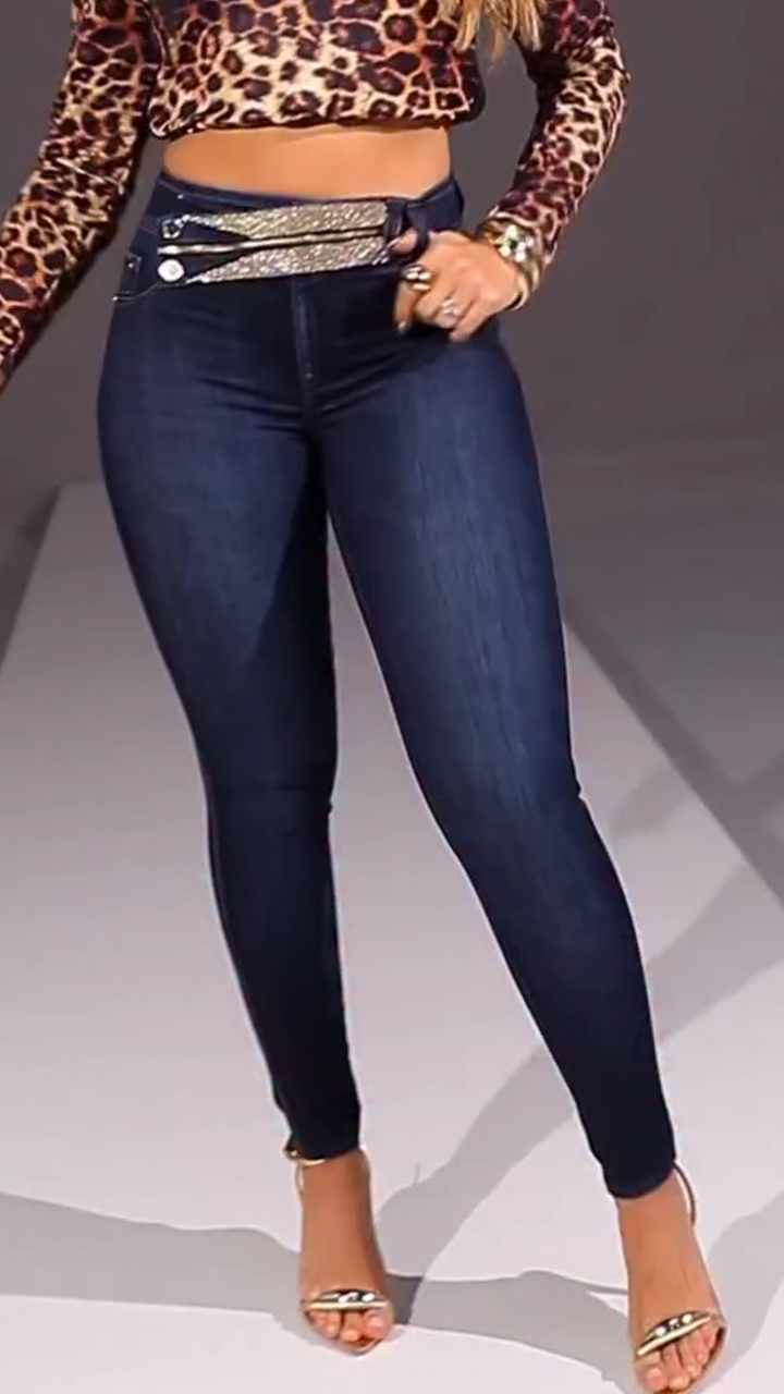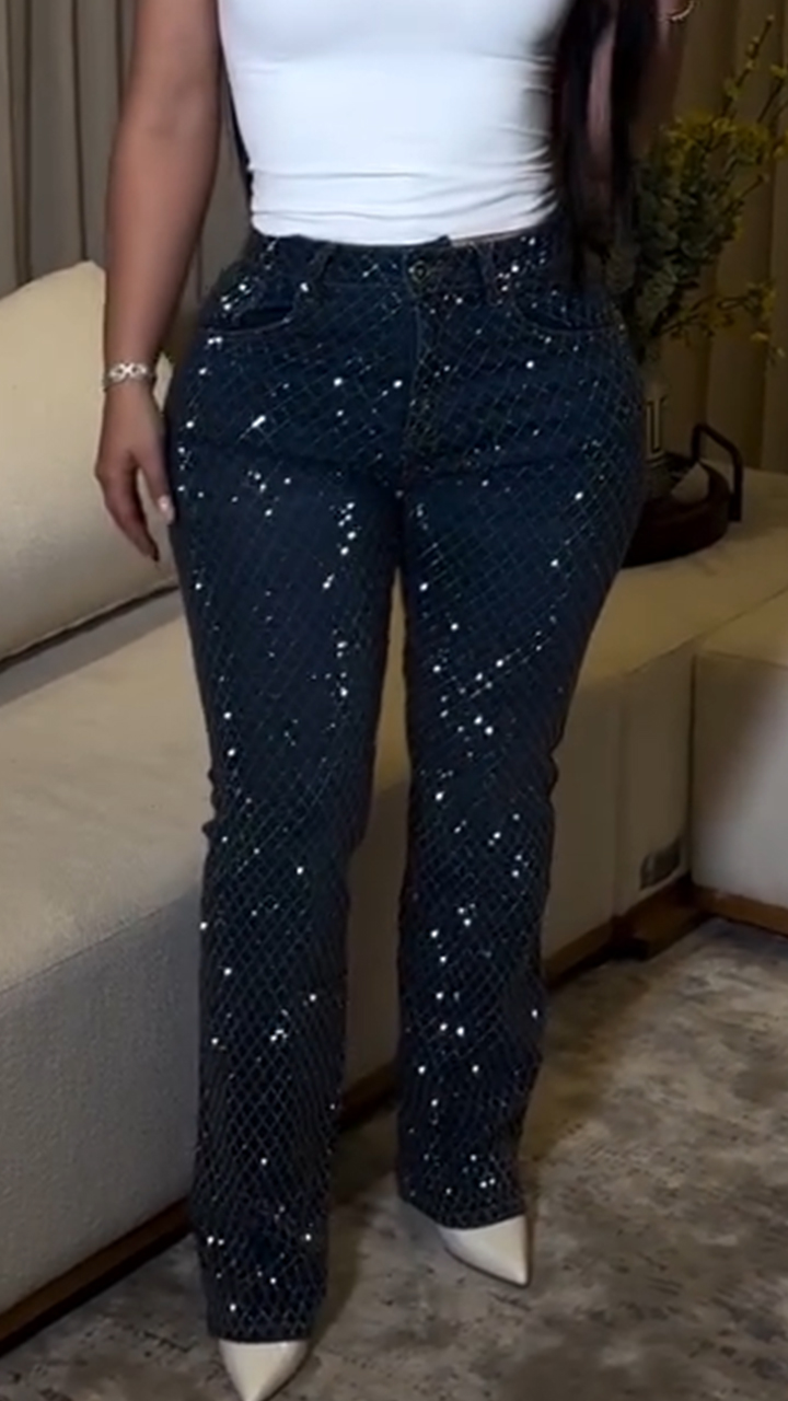 Women Rhinestone Casual Jeans