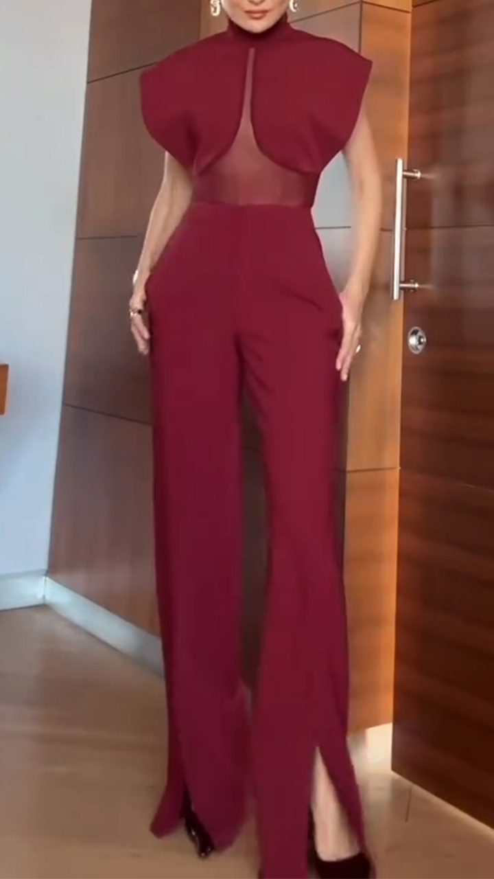 Women High Neck Solid Color Casual Suit