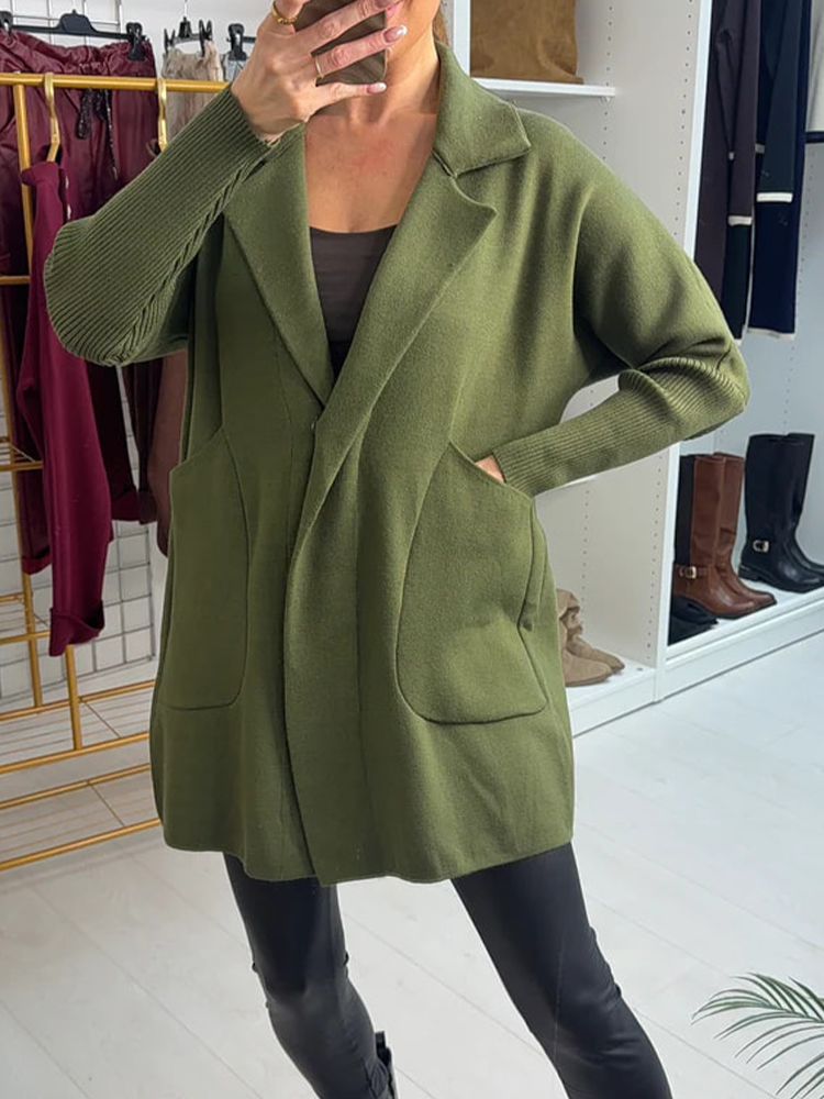 Women Lapel Solid Color Casual Jacket