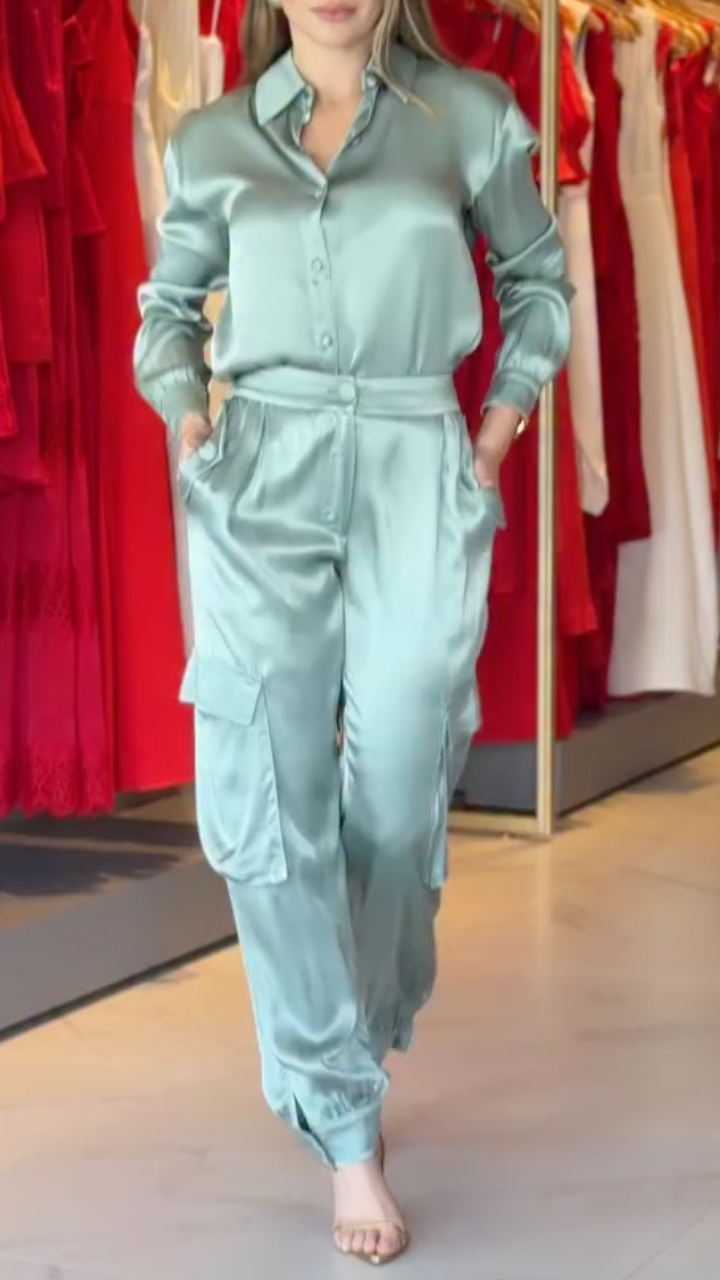 Women's Lapel Satin Casual Suit