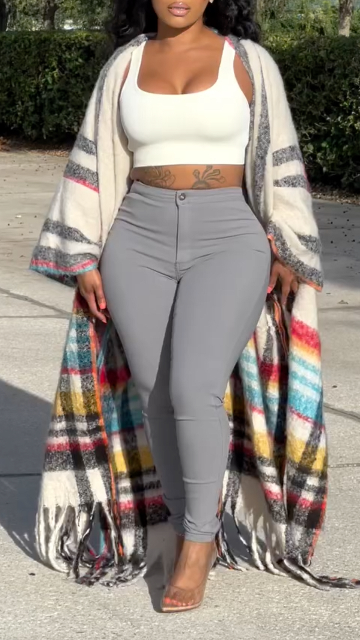 Women's Striped Tassel Fashion Long Cardigan
