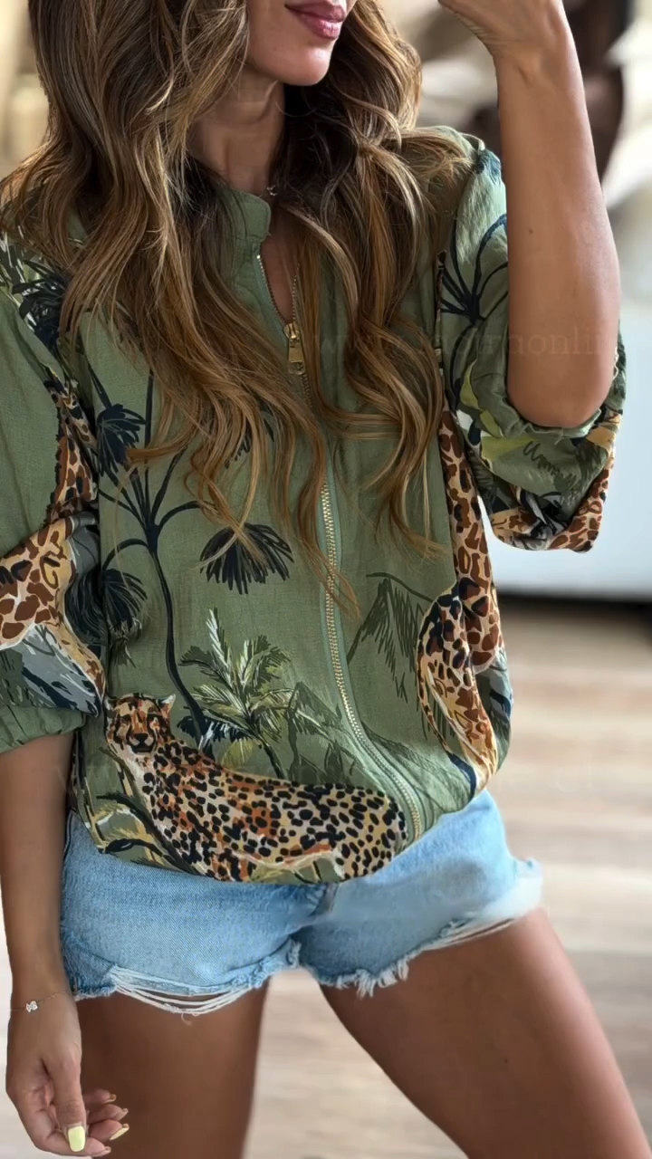 Women Round Neck Printed Casual Jacket