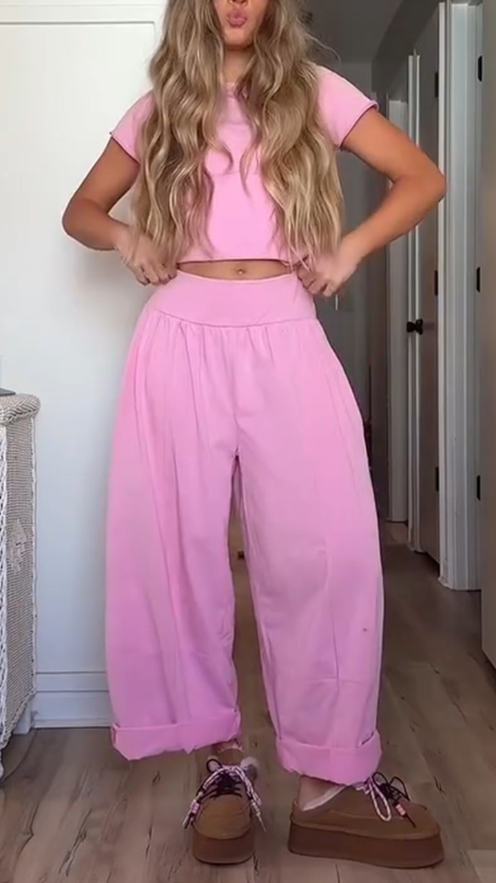 Women Round Neck Top+ Pants Casual Outfit with Temperament