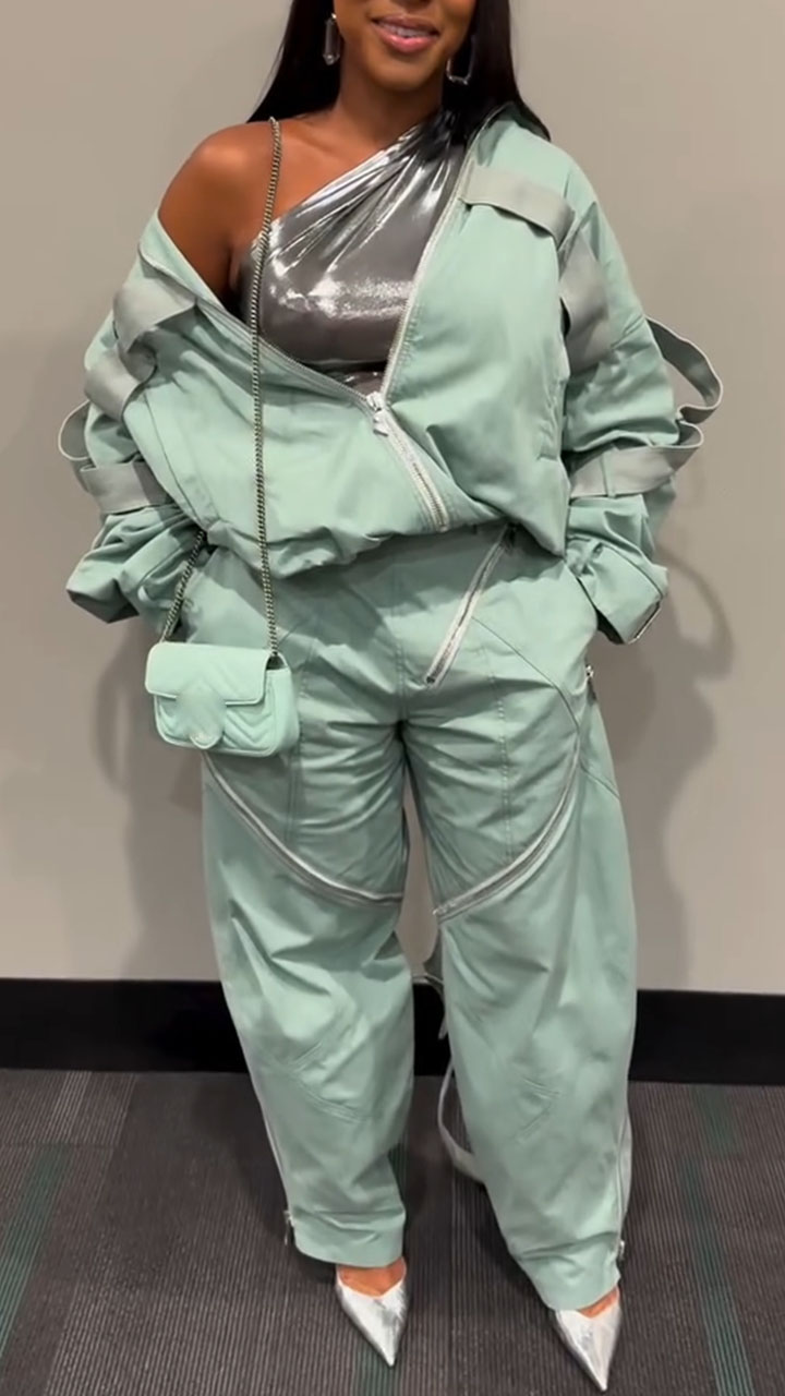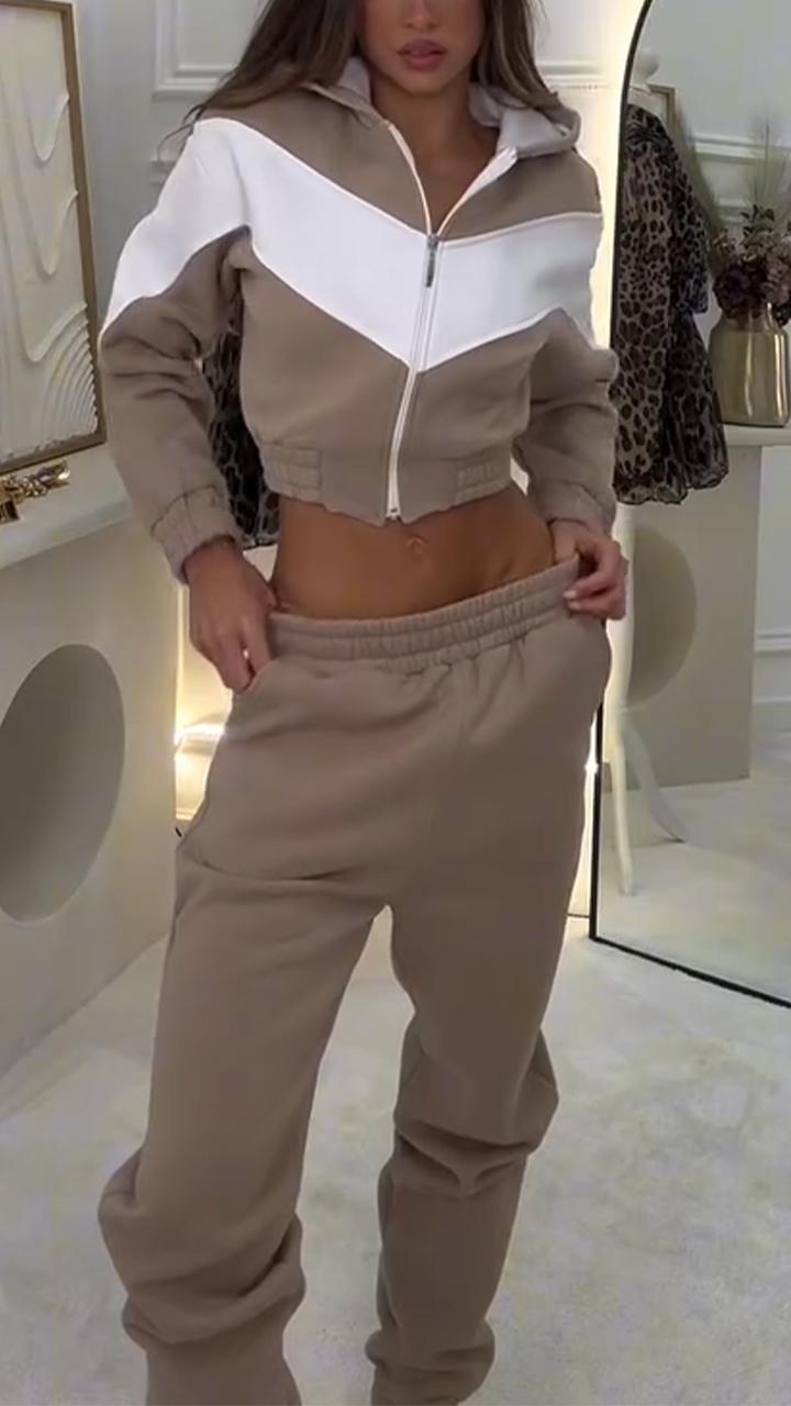 Women Patchwork Jacket+ Pants Casual Set
