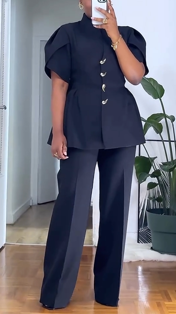 Womens Round Neck Top+ Pants Temperament Commuting Suit