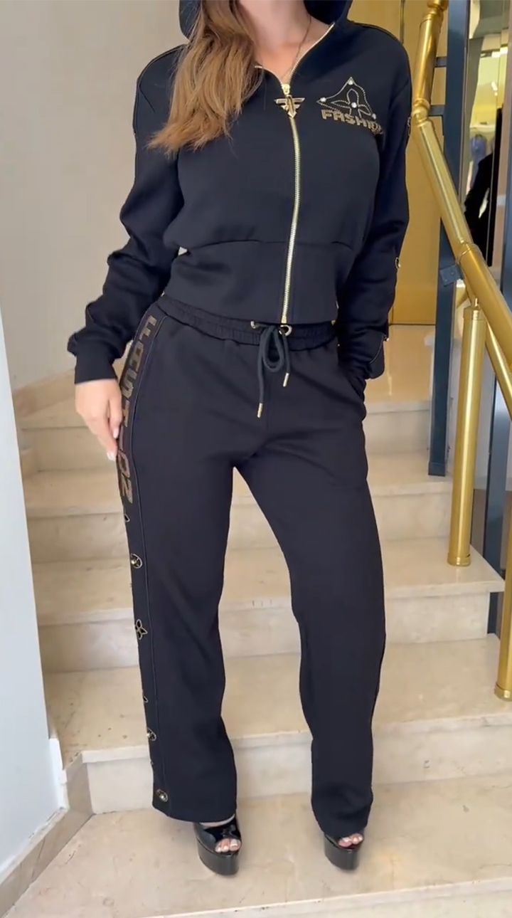 Women Hooded Hot Stamping Jacket+ Pants Casual Set