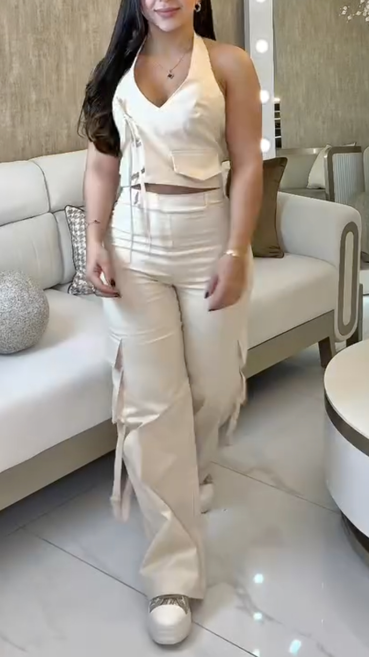 Women Neck Hanging Top and Pants Casual Suit