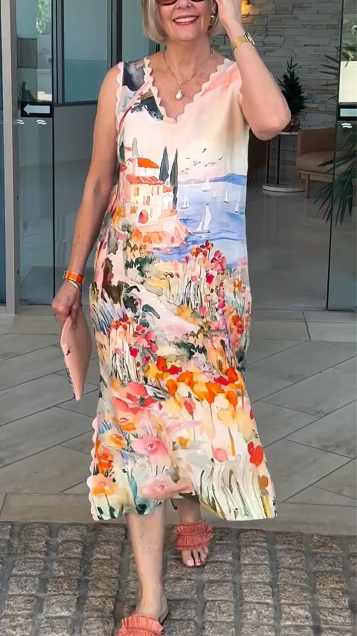 Women V-neck Printed Elegant Temperament Dress